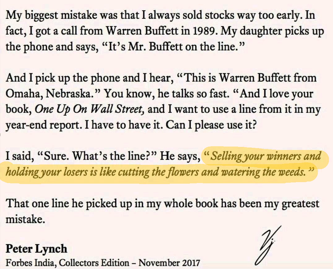 that being said Nick Sleep's line on opportunity cost is one of my favourites “the biggest error an investor can make is the sale of a Microsoft in the early stages of the company's growth. mathematically this error is far greater than the equivalent sum invested in a firm that goes bankrupt. the industry tends to gloss over this fact, perhaps because opportunity costs go unrecorded in performance records.”