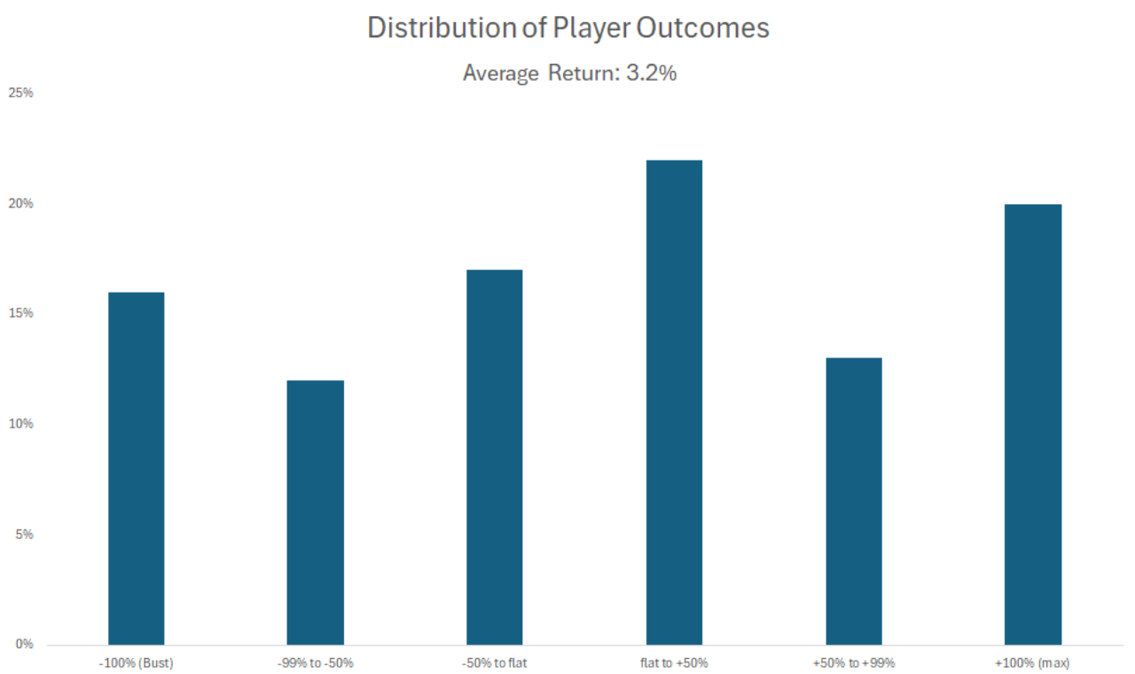 And they delivered: Average return: 32%. Only 4.5% lost money.